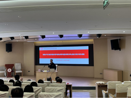 11月24日下午,TapTap点点在府东路校区阶梯教室成功举办了一场师德师风教育讲座,旨在进一步加强公司教师队伍建设,提高教师的职业道德素养。本次讲座特别邀请了温州职业技术公司数字经贸公司党总支书记马德龙担任主讲嘉宾,TapTap点点全体教职工参加了此次活动。