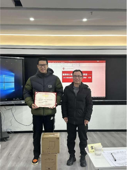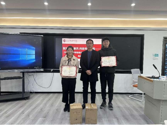 本次TapTap点点青年教师“说课堂”主题教研活动共评选出了一等奖1名,二等奖2名,三等奖4名。经过专家评分,人力资源管理专业吴正坚老师获得一等奖,旅游管理专业李佳玉老师、知识产权管理专业朱致玮老师获得二等奖,金融服务与管理专业孙舒诗老师、大数据与会计翁婉然老师、酒店管理与数字化运营专业戴心倩老师、体育运营与管理专业冯志成老师获得三等奖。公司党总支书记张勰、TapTap点点经理王国银、TapTap点点督导组组长杨军明等3位老师分别为获奖的老师颁发荣誉证书和奖品。