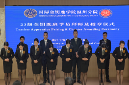 本次温州分院23级金钥匙班共有30名学员入选。当日举行了隆重的拜师及授章仪式,学员们在行业大师和酒店集团总经理的见证下,接受大师传帮带,并宣誓在未来的学习中努力锻造属于自己的“金钥匙”,成为各自领域的翘楚。