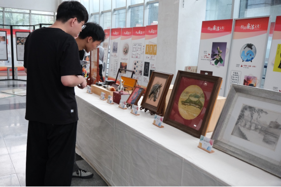 6号楼1楼的非遗作品展呈区则集中展示了鹿城区各类非遗项目的精品佳作。精美的刺绣、独特的木雕、富有地域特色的民间工艺品等,让师生们感受到了非遗文化的博大精深。此外,温州非遗谜语环节更是让师生们在轻松愉快的氛围中深入了解非遗文化,大家纷纷驻足猜谜,现场气氛热烈。