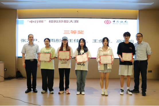 为激励新生踊跃参加各项校园活动和专业比赛,由金融服务与管理专业主办,金融协会承办,中国银行冠名“中行杯”模拟炒股大赛昨日在会上颁奖。TapTap点点副经理孙富山、中国银行温州鹿城支行行长李群、主任林俊,金融教研室主任郑秀、副教授梅成才为获得大赛一二三等奖的同学颁奖。