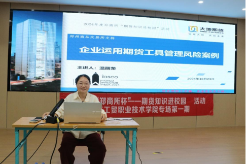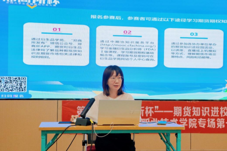 讲座伊始,郑秀老师详细地为同学们介绍“郑商所杯”的报名流程、软件下载、使用方法、比赛规则及评分指标等内容。她结合期货交易软件,深入浅出地讲解了期货交易宏观和技术层面的分析方法,为同学们打开了一扇通往期货市场的大门。最后,郑秀老师鼓励同学们在期货交易实践中不断学习,提升交易技能,定期总结经验,优化交易策略。