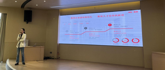 接着,新道用友公司和网凝科技有限公司的职能部门负责人分别介绍了企业的概况、相关会计产品和专业人才需求,并表示欢迎有意向的同学报名前往其单位实习和就业。