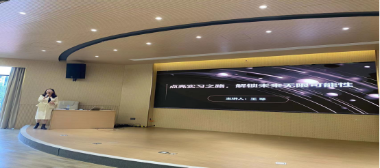 最后,高级会计师、财务总监王琴给同学们做实习期间的实习规划培训讲座,王老师结合自己丰富、励志的学习和工作经历,给同学们分享实习期间应该注意的事项和重点的工作内容,激励同学们奋进实干、相信未来,提升职业生涯高度,创造美好的职业未来。