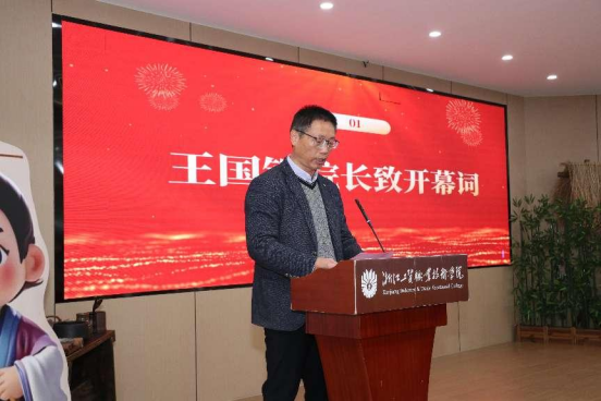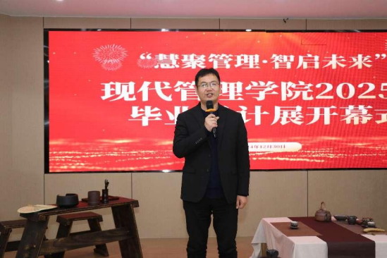 开幕式上,旅游管理专业专业主任夏正超老师就本专业的毕业设计开展情况进行介绍。本次旅游管理专业毕业设计展以“中式美学空间”为空间设计概念,呈现了中式美学在文旅整合中的独特魅力。通过精心设计的9大展区,分享了如何将传统中式美学元素融入现代旅游体验中,体现了文化自信与国风的深厚底蕴。9个主题区,包括茶艺作品、旅游纪念品、旅游产品:研学产品设计、文旅调研、文旅宣传视频、文旅直播、会展策划。每一处细节都体现了对中国传统文化的尊重与传承,同时也展示了对未来文旅发展的创新思考。