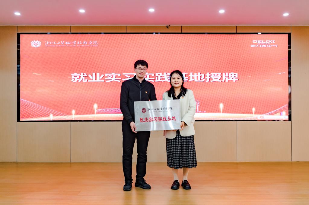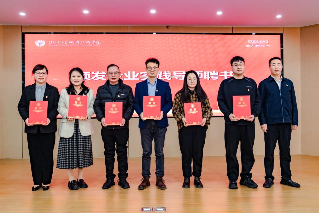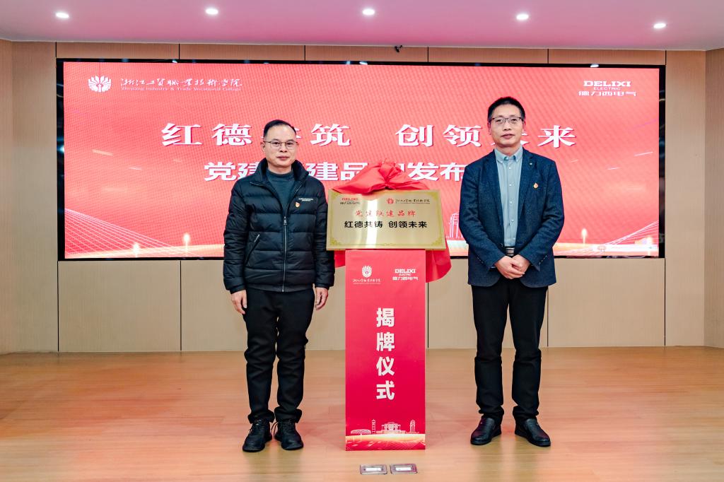 仪式上,王春柳副书记与胡跃山总监共同签署了《校企协同育人协议》。公司领导为胡成虎高级副总裁颁发了客座教授聘书,为胡跃山等六位企业实践导师颁发了聘书。公司授予德力西电气有限公司“老员工就业实习实践基地”牌匾,并共同为党建联建品牌——“红德共铸,创领未来”揭牌。