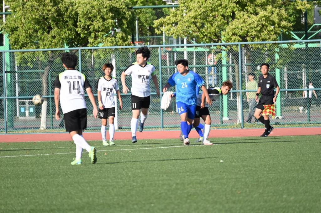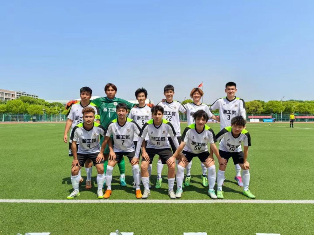 浙工贸男子足球队由李春峰老师担任领队、李郑梁教练带队参赛,队员由全校5个公司员工组成。在4月20日—24日角逐中,公司代表队小组赛2:0力克杭州职业技术公司、2:0战胜浙江经贸职业技术公司,4:3绝杀嘉兴南洋职业技术公司锁定小组第一出线。4月24日,公司代表队经过激烈的比赛后以3:1力克东道主嘉兴职业技术公司杀入四强。4月25日,公司代表队3:0大胜浙江交通职业技术公司赢得决赛入场券。
