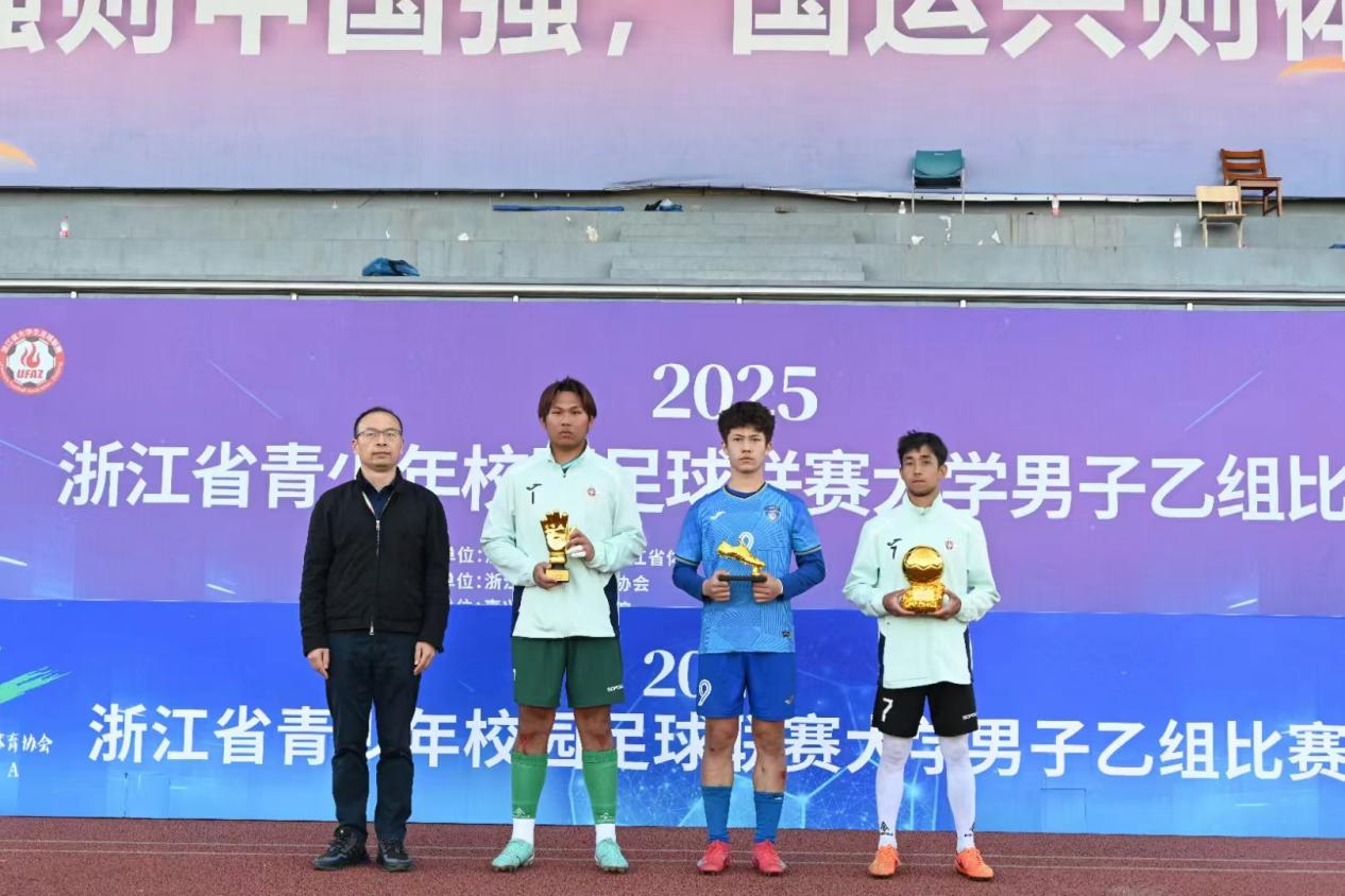 近日,2025年浙江省青少年校园足球联赛大学男子乙组比赛落下帷幕,公司男足奋力拼搏,连克强敌,以全胜战绩斩获冠军,此为公司男足历史最佳成绩。公司荣获大赛“体育道德风尚奖”、教练李郑梁老师荣获“优秀教练员”称号、队员周展博荣获“最佳门将”称号、队员阿卜杜克尤木·萨迪克荣获“最佳运动员”称号。