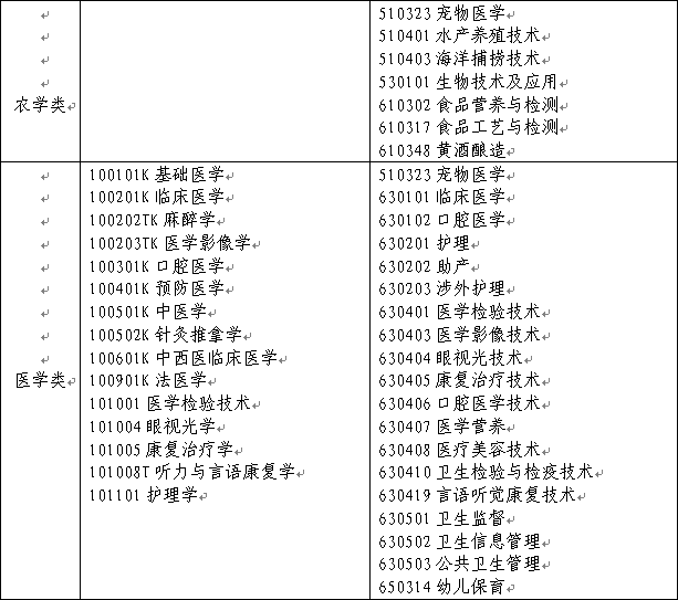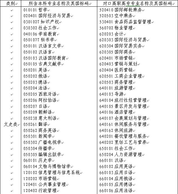 根据专业对口原则,高职和本科专业分为文史、理工、经管、法学、教育、农学、医学、艺术八个招考类别(见附件2)。