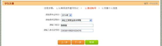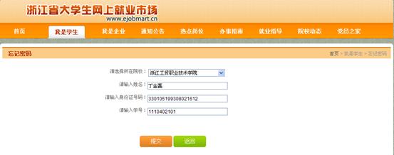 5、选择“浙江工贸职业技术公司”,输入员工相应信息:姓名、身份证号码、学号