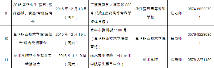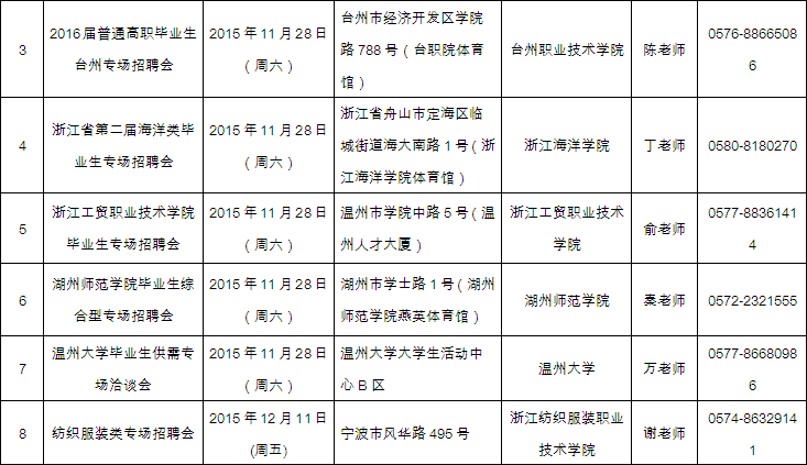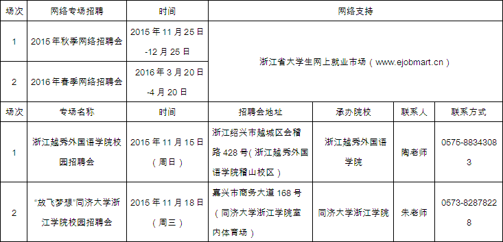 “浙江省高校毕业生就业指导服务中心2016届高校毕业生系列专场招聘活动”日程安排
