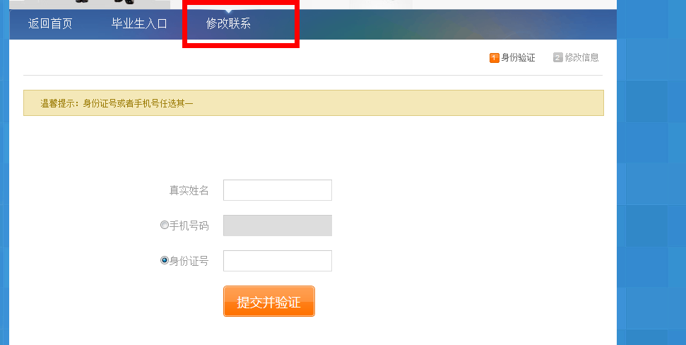 毕业后更换了手机号码与QQ号码,无法获取验证码,可进入系统修改新的手机号码,修改后需要通过管理员审核方可使用。
