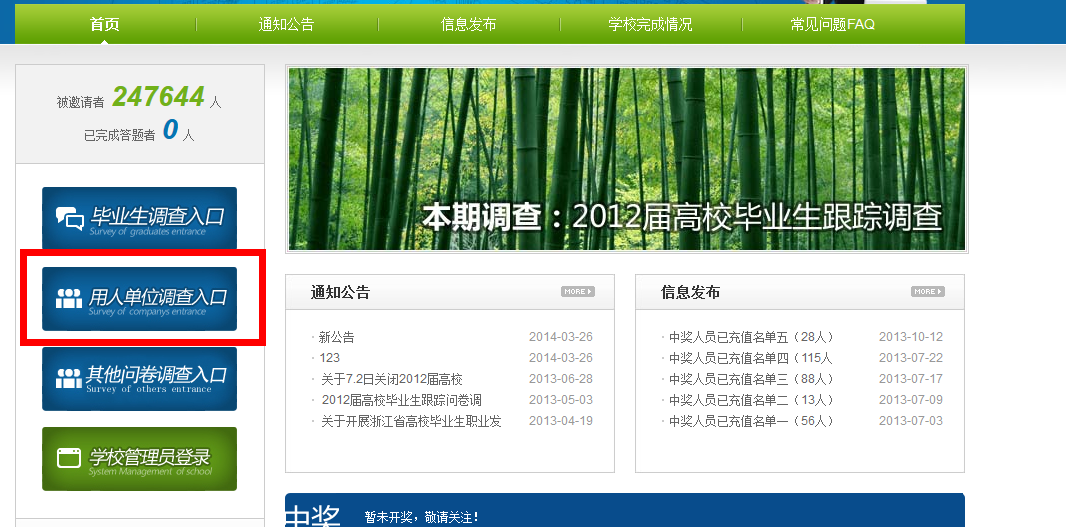 进入网站首页后,点击左上角的用人单位调查入口进入入口页面。