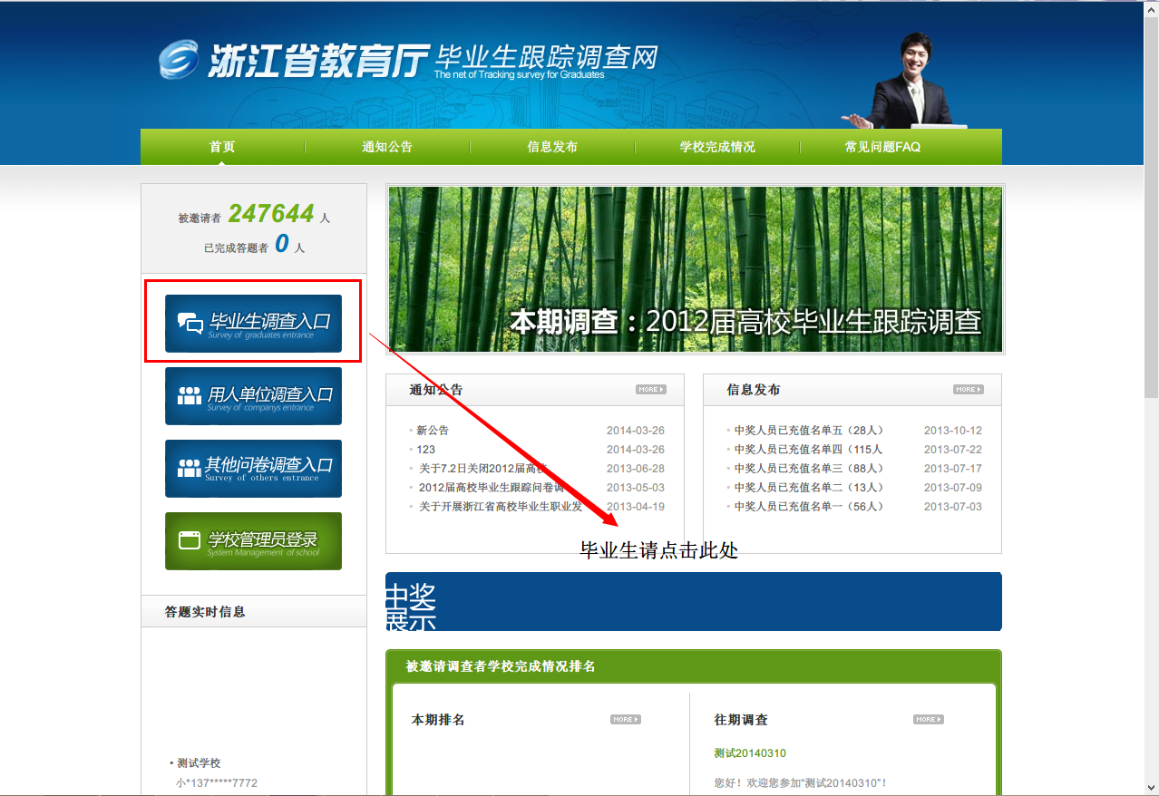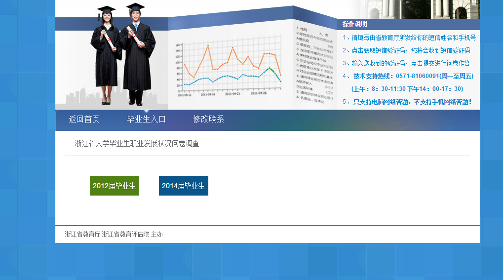 进入网站首页后,点击左上角的毕业生调查入口进入入口页面。