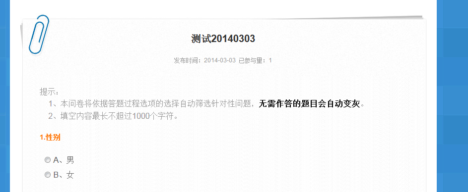 调查活动开始后,系统会发送答题链接到上报的邮箱中,收取邮件后,点击右键内的链接直接进入系统,如图页面。