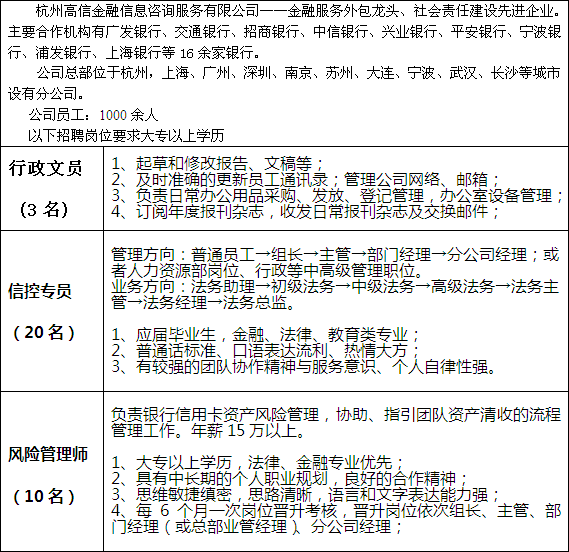 公司提供专业的岗前培训,8小时工作制,双休,毕业后签订劳动合同即缴纳五险,按照国家规定节假日休息,无责任底薪+绩效提成,月薪5000元左右,可提供住宿。发展升职空间畅通、优秀者6-12个月可升组长、主管、部门经理。