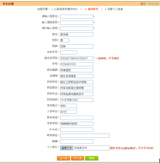 5、选择“浙江工贸职业技术公司”,输入员工相应信息:姓名、身份证号码、学号