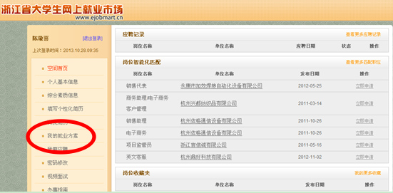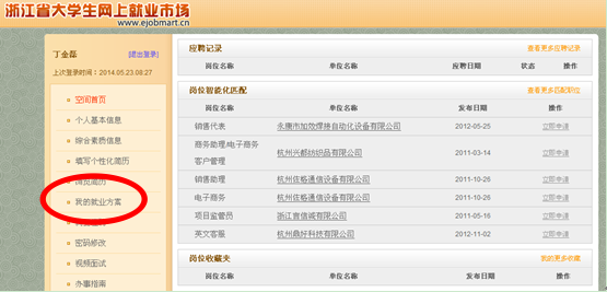 9、左侧点击“我的就业方案”