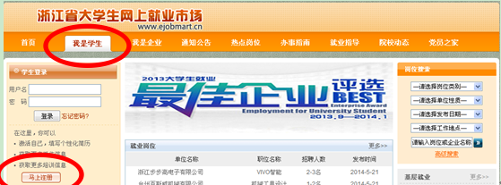 1、登入“浙江省老员工网上就业市场网站”http://www.ejobmart.cn