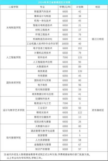 ▲从浙江省的招生来看,普通类专科计划1875人,高职提前招生计划290人,艺术类计划39人,单考单招计划1926人。