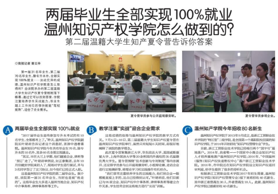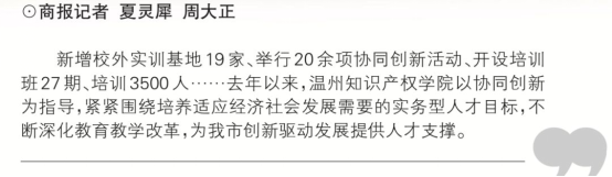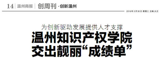温州商报对知识产权公司两届毕业生100%就业的报告。