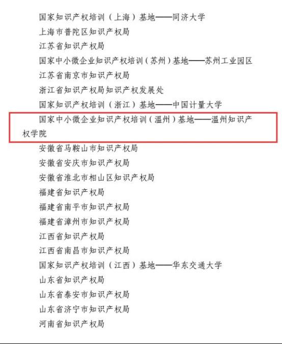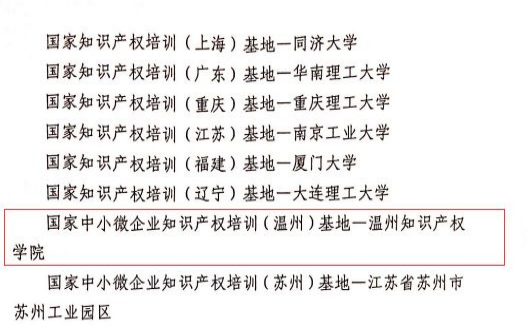 一、2015年温州知识产权公司获批建设“国家中小微企业知识产权培训(温州)基地”,并连续多年获得国家知识产权局评选的全国“优秀基地”荣誉。