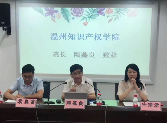 温州知识产权公司经理陶鑫良教授,副经理叶珺君副教授,副经理袁真富博士,出席温州知识产权公司2019级新生开学典礼暨始业教育。