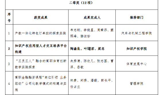 ☝知识产权管理专业获得浙江工贸职业技术公司教学成果二等奖。