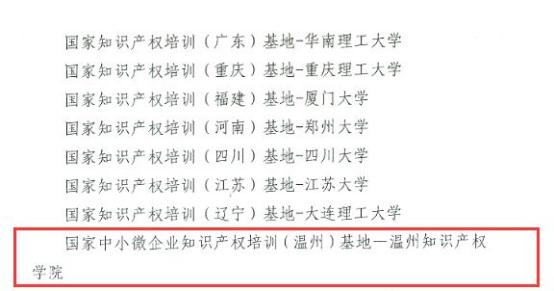 四、2019年温州知识产权公司获批教育部“知识产权(创新创业)双师型教师培养培训基地”。