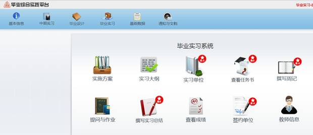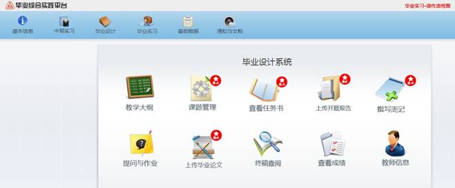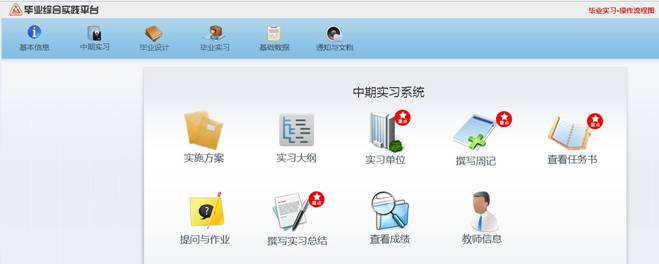 毕业综合实践平台主要包含三部分:中期实习、毕业设计、毕业实习