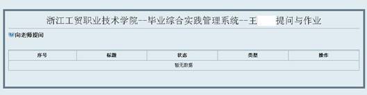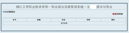 提问与作业模块,同学可以把自己在写论文中发现的问题通过提问模块向老师请教,同时老师平时也会把需要员工做的作业通过这个模块发给员工。建议同学用QQ或电话和指导老师交流,这样更及时与便捷。
