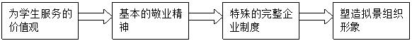 价值观作为一个企业或组织的核心所在,价值观是有别于事实判断和科学知识的另一类认识形式,是判断是非曲直、真善美与假丑恶的价值准则。对于拟景组织这样一个孕育于高职高专教育体系下的特殊组织,它的价值观一定是和校园文化的形成息息相关的,任何一个拟景组织在树立价值观时必须要从实际出发,结合本校的氛围和文化。由于在拟景组织的建设中,人力资源是以员工为主体的,因此拟景组织的企业文化价值观还是会带着原有校园文化的浓厚气息。在形成拟景组织的价值观时要避免单一的员工个人本位思维出现,必须让员工在特定的场合下转变自己的身份成为一个职业人,提高职业思维的“入住率”,注重团队精神和敬业精神的培养。
