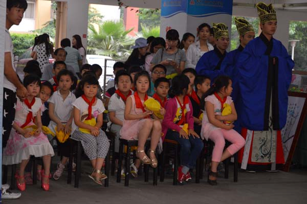 本次活动在传统祭拜屈原仪式下拉开了帷幕。祭拜屈原仪式主要分为净手、奏乐、燃香、跪拜、初献、亚献、终献、读祝这八个环节。同学们还准备了是朗诵《橘颂》以及精彩的相声表演来纪念我国伟大爱国诗人屈原。随后,开展了各项端午民俗活动,有“巧手制香”、“双龙戏珠”、“咸蛋彩绘”、“斗草之文斗”、“立夏蛋套”、“射五毒”。通过这些活动,也让同学们和瓯越小学的小员工们一起了解传统端午节习俗并参与其中。