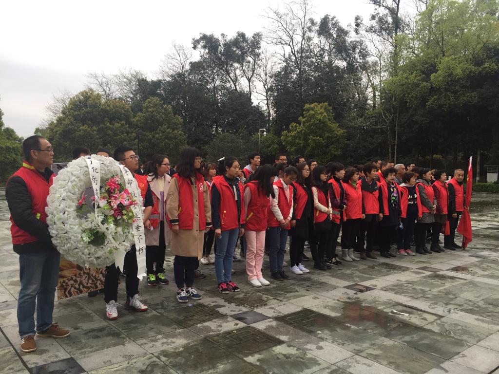 上午,酒管1602班的33位志愿者们在双乐社区负责人的带领下赶赴了翠微山烈士陵园,站在烈士门的陵墓前所有人都静静地肃立瞻仰着面前高高的纪念塔,为革命先烈唱国歌默哀三分钟,向长眠于地下的革命烈士深深鞠躬,并向他们献花圈和小白花。