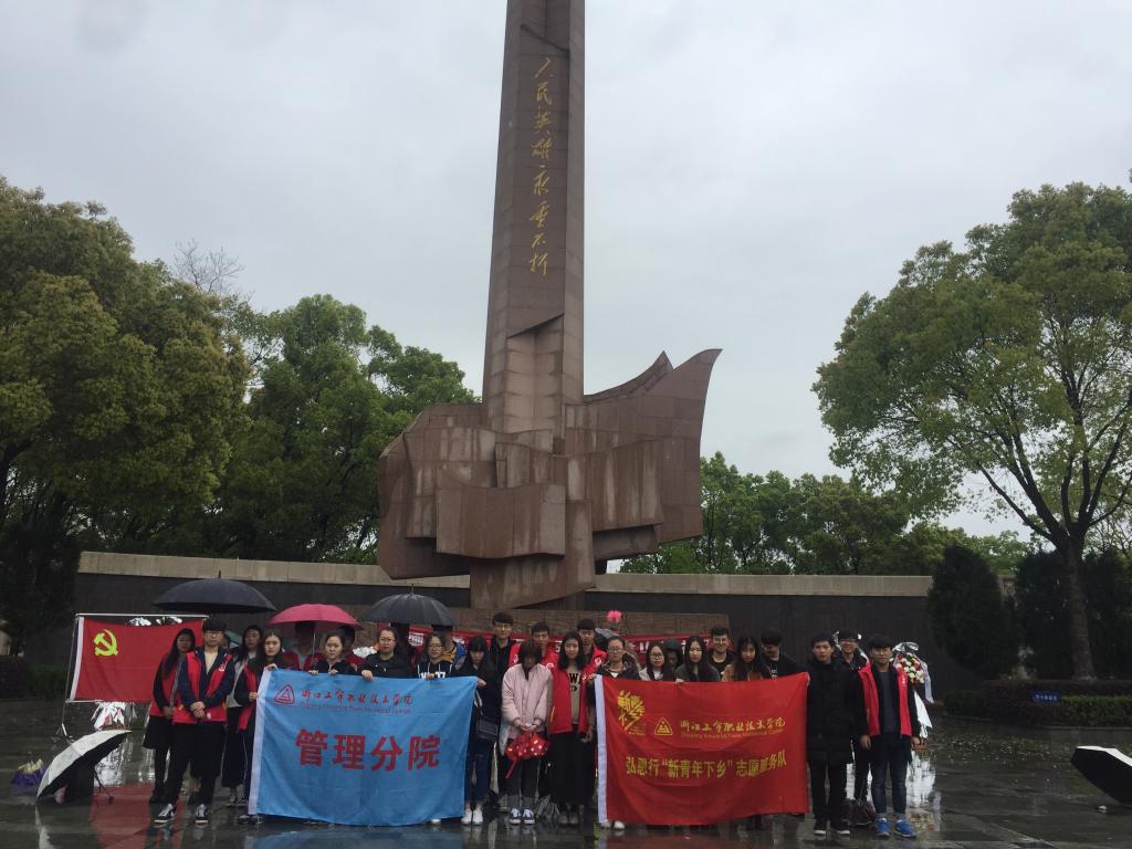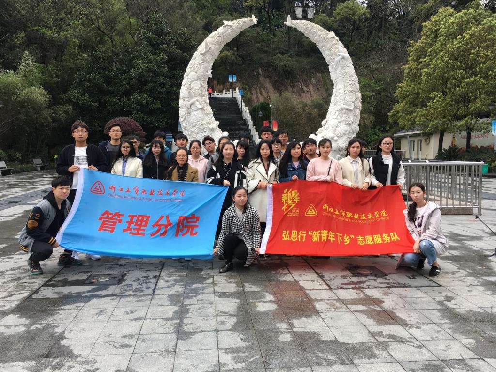 2017年3月31日,在清明节这个具有鲜明中华民族色彩的传统节日来临之际,管理分院弘恩行志愿团的三支队伍:酒管1602、会计1604、酒管1601分别与鹿城区广化街道双乐社区、特陶社区、集善社区一起开展了新青年下乡活动。活动主题分别为:“鲜花祭故人 春雨寄哀思 ”、“不忘革命先烈”、“清明追忆民族魂,手制小花献烈士”。