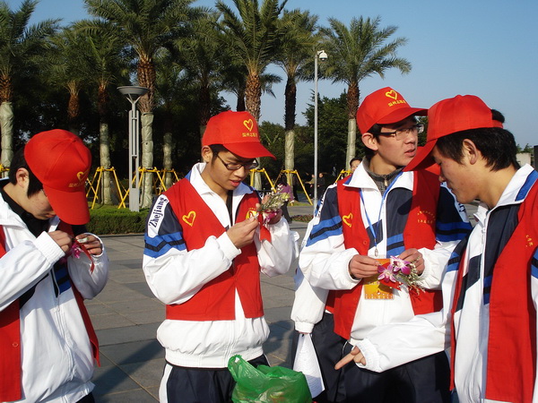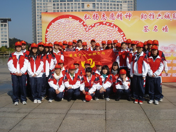 活动现场人头挤挤,旗帜飘扬,广场西侧的活动签名墙上,构成“心心相印”图案的成百上千 “心手”形墙贴中,记录了即将参与助推“六城联创”志愿服务活动许许多多志愿者的名字,以及他们奋发进取的誓词、互相勉励的关怀、对温州明天的憧憬和对新志愿者的召唤。