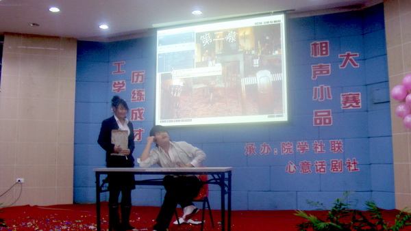 本次活动以“工学结合”为主题,经过长达69天的精心策划、排练及选拔,最终由来自心意话剧社、经贸公司等9支代表队参加决赛。比赛中,小品、双簧、相声等节目形式各异、内容丰富并富创新意识。演员们幽默的语言、真实的感情、精湛的演技、灵敏的反应能力等,感染着在场的每位观众,场内时常爆发出阵阵掌声和笑声。
