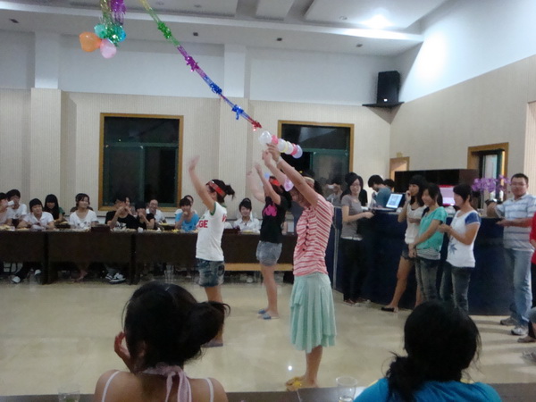 中秋节之前,同学们在紧张的学习和实习之余,积极准备晚会节目,晚会现场特地邀请了遂昌金矿矿山公园的工作人员,与他们一起共度中秋。晚会气氛热烈,员工、老师与景区工作人员共同参与互动游戏,将晚会推向高潮。