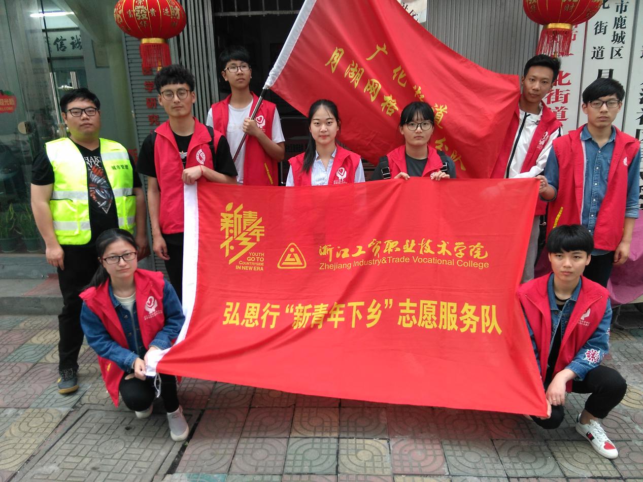 2017年4月19日,浙工贸弘恩行志愿团新青年下乡队伍的8名志愿者来到了广化街道月湖社区与社区居民一起开展 “剿灭劣V类水,我们在行动”的治水活动。