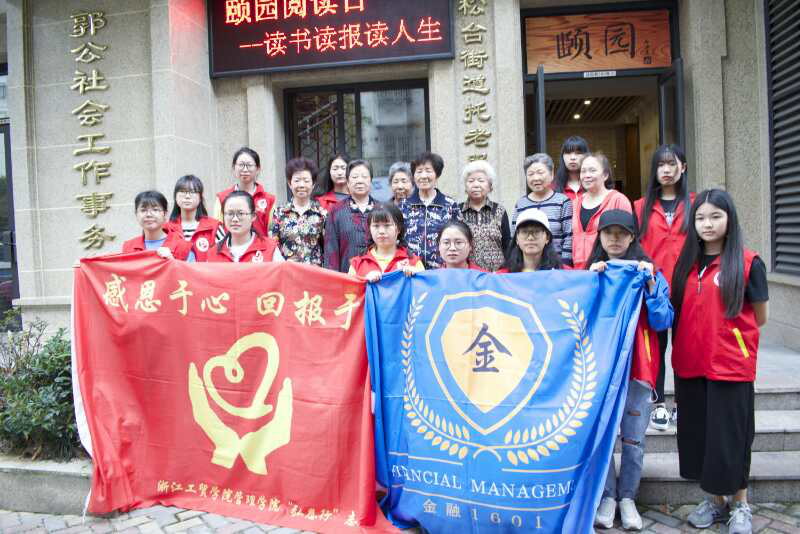 草长莺飞四月天,正是人间读书日。4月19日下午,浙江工贸职业公司管理分院弘恩行志愿团队金融1601班的13名志愿者在松台街道托老服务中心开展了“颐园阅读日”活动,为郭公社区老人们读书、读报,现场书香四溢,和乐融融。