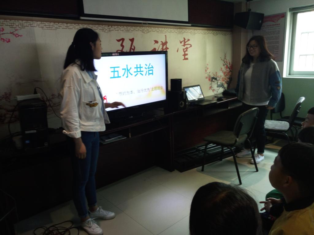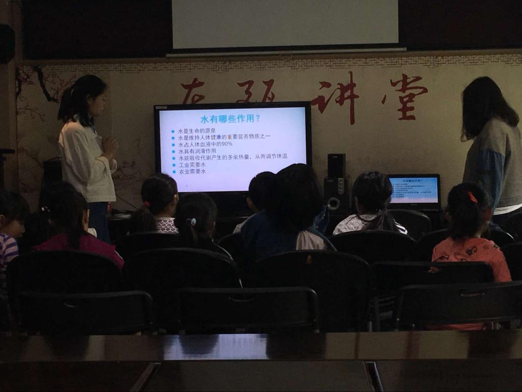 在专题教育课上,志愿者老师们向小朋友们宣传五水共治,详细介绍了污水和洪水,重点讲述了如何节约用水。志愿者老师们用生动形象的方式给小朋友们上课,小朋友们也积极参与并认真回答,更与志愿者老师们交流了在生活中应该怎样做到节约用水。志愿者老师还特别为孩子们准备了五水共治动画宣传视频,通过动画视频宣传五水共治,来提高孩子们的兴趣以达到潜移默化的向孩子们灌输节约用水和保护水环境的意识。
