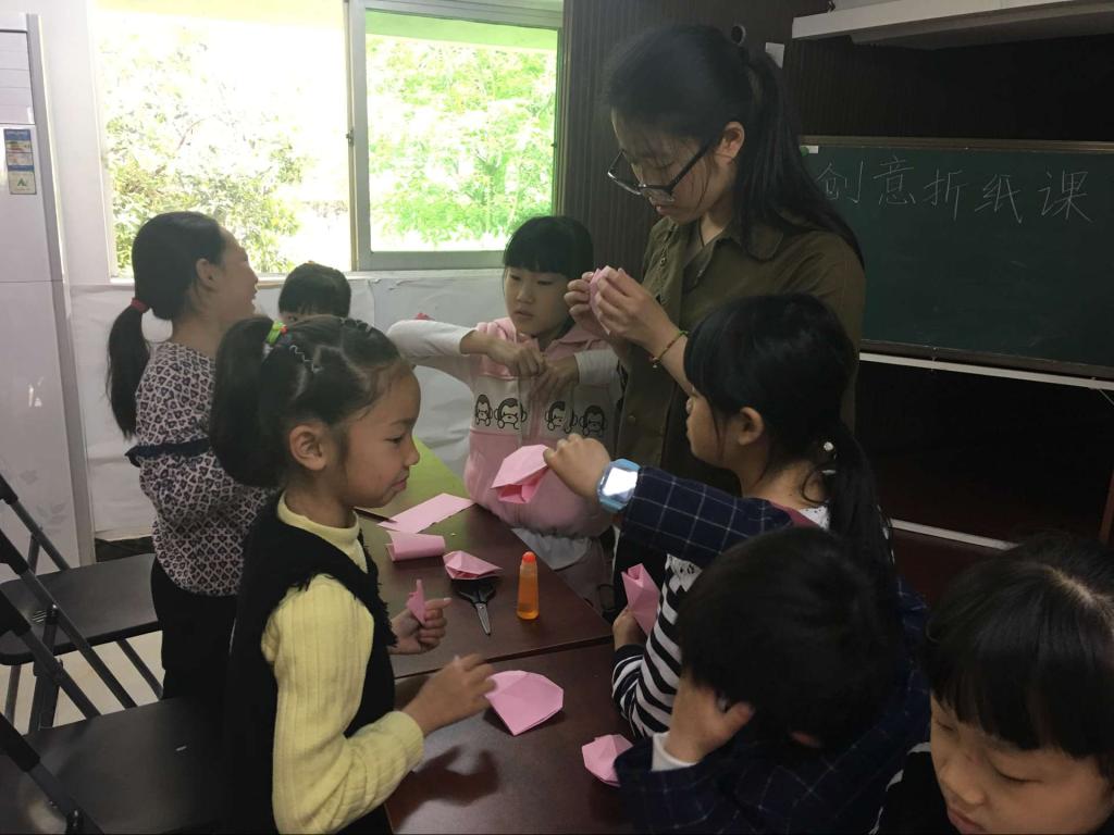 除了专题教育课,志愿者们还开展了培养孩子们动手能力的折纸课。首先由志愿者老师演示,然后指导孩子们一步步折下来,通过认真学习和相互帮助,孩子们都折出了属于他们自己的“心”。