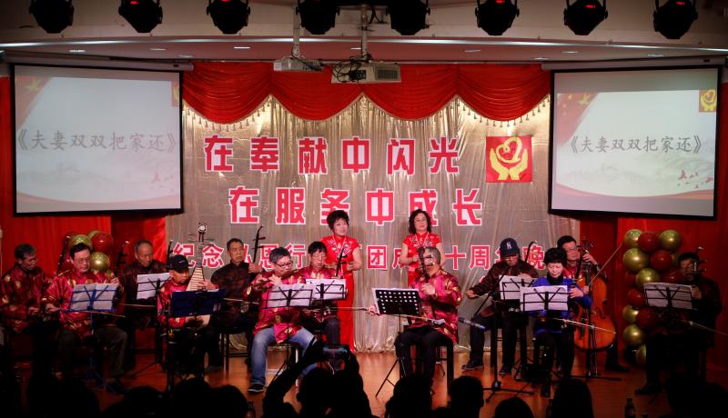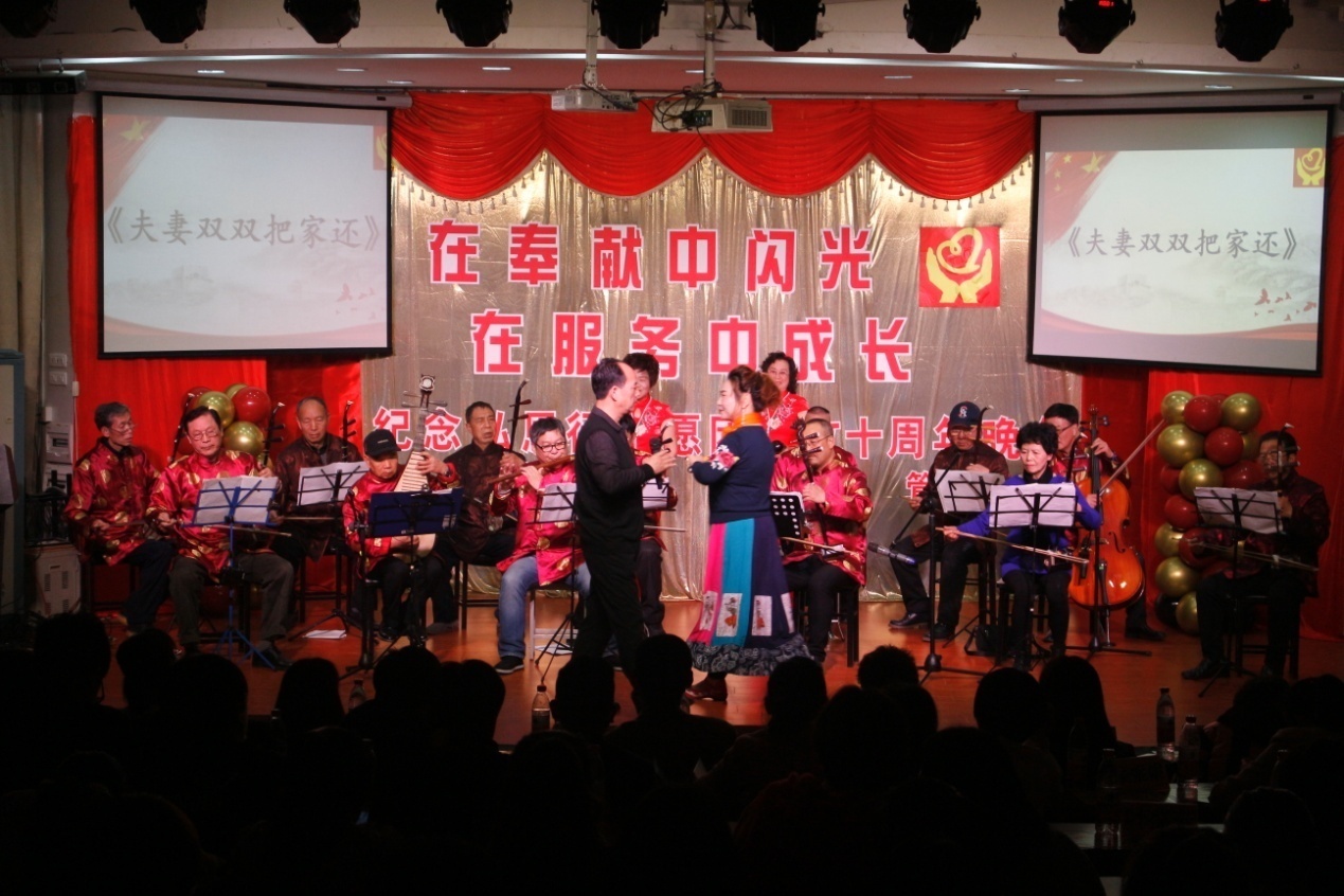 志愿者们演绎的小品《站台》表达了过年前依然坚守在岗位的列车员和默默为回家的人们提供服务的志愿者的奉献精神,感受到了他们的不容易,不禁让人心生敬佩。公司吉他社同学们欢快轻盈的歌曲《都选C》给社区的老人和师生们带来片刻的欢愉。