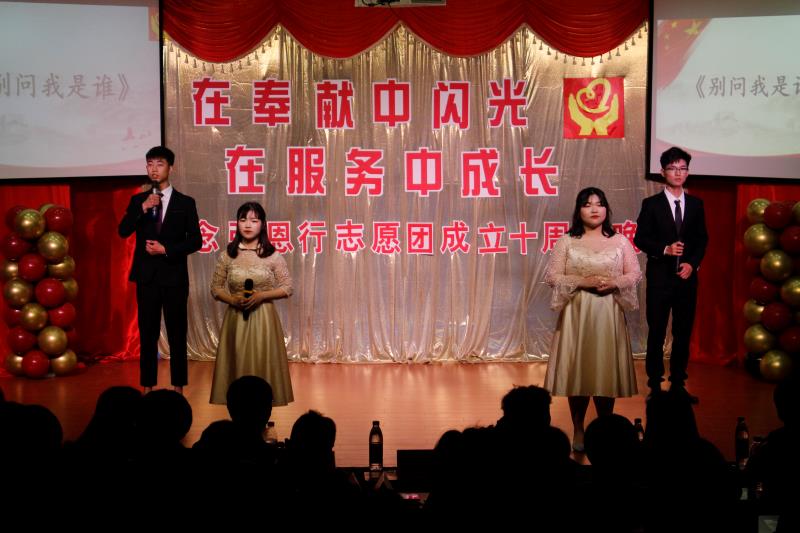 据悉,为了表达对弘恩行志愿团成立十周年的祝福,管理分院新青年下乡活动结对街道的8个社区负责人通过视频的方式向晚会送来祝福,并向为社区文明建设作出贡献的志愿者们表示感谢。