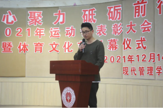 伴随着庄严肃穆的国歌声,大会正式拉开序幕,主持人宣布各个项目获奖运动员的名单,并让运动员代表上台领奖,由与会老师为他们颁奖并合影留念。颁奖运动中最激动人心的是宣布破纪录运动员名单,他们分别是体管2001周东杰、林国任,体管2101施佳楠、周杨杰、徐嘉伟、陈光煌、王锦浩,酒管2104韩培和会计2102陈怡。在与会老师为体训队队员颁发聘书并合影,TapTap点点运动会表彰大会部分正式结束。紧接着,体育文化节隆重开幕。