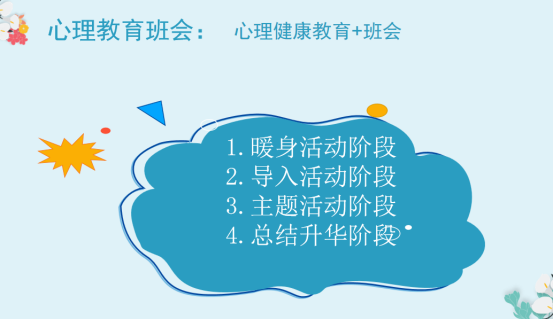 黄老师指导各班心理委员从四个方面开展主题班会。首先是暖身活动阶段,用于活跃活动气氛、减低心理防御、引发参与后续活动的兴趣。这部分,心理委员们一起参与成语接龙、大树与松鼠和小鸡进化论的暖身活动,在实践操作中掌握团体辅导的方法。接着是导入活动阶段和主题活动阶段,这部分各心理委员们可以利用案例、视频、案例、心理剧、小测试和小组讨论进行。最后的主题班会阶段是总结升华阶段,各班可以主持人总结、在场员工总结、集体宣誓或同唱一首歌进行。活动最后,黄老师以人际关系主题班会为例,与心理委员进行一次该主题的心理班会展示,班会融入讨论、撕纸游戏、总结和倡议,学会尊重和理解他人、进行良好沟通和营造积极心理暗示。