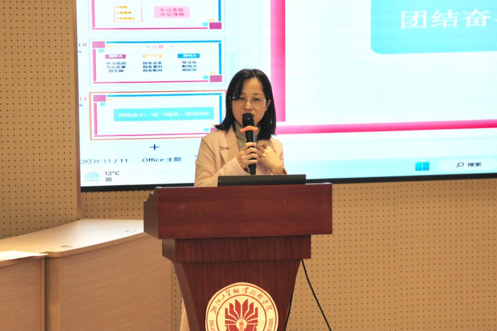 随后,全体员工干部观看视频《用“心”回望,以“新”前行》,回望2022年分院的团学工作和员工风采。分院团总支书记贾飞祥老师向在场团学干部提出“我们的初心、使命和愿景是什么”三个问题,并用一个个鲜活的优秀的团学干部工作事例诠释初心在成长、使命在育人、愿景是成才,也希望各位员工干部继续将“让优秀成为一种习惯”的优良传统成为做人做事的行为准则。