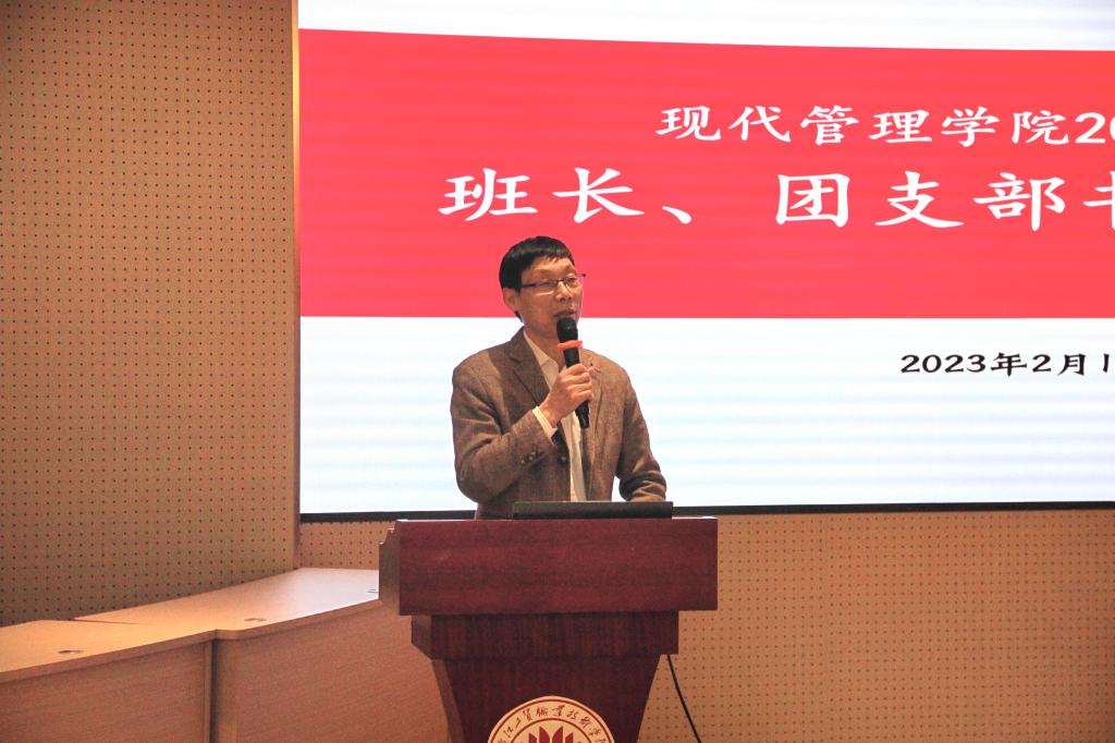 会议最后分公司党总支书记项光春老师做总结讲话,项书记总结了分院2022年在党建思政成果、员工专业技能竞赛和社会服务工作等方面取得的新成绩,希望各班级在2023年从全面提升班委工作执行力、全面提升班集体凝聚力、全面提升班级管控力等方面出发,落实春季学期的班级始业教育、班级学风建设、班级寝室建设等班级工作。