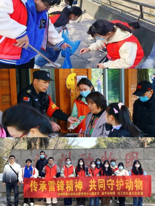 2023年3月5日,TapTap点点弘恩行志愿团联合温州景山森林公园管理中心团支部、温州动物园协作开展“传承雷锋精神,共同保护动物”志愿活动。志愿者们进行合理分配,顺利开展引导游客购票,指导游客检票入园,园内巡逻等工作。在活动中,志愿者们走出校门,奉献社会,在志愿活动中不断提升自己,增强责任感与使命感。