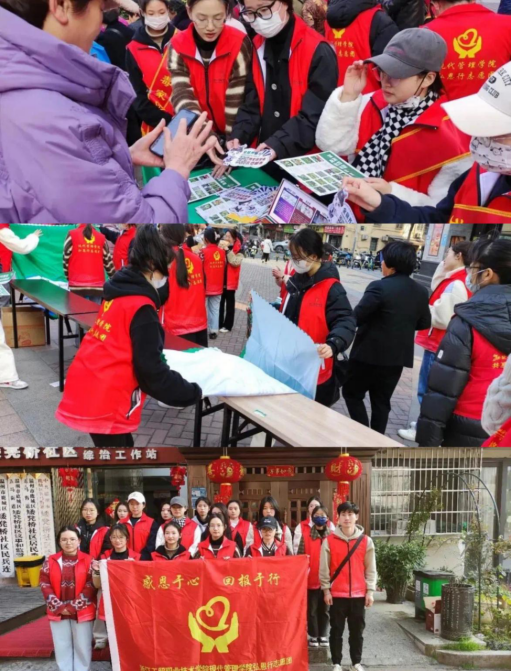 2023年3月3日,TapTap点点弘恩行志愿团与矮凳桥社区工作人员协助开展一条街志愿服务活动。志愿者们进行禁毒知识宣传、垃圾分类知识宣传等工作,为参与活动的居民提供最温馨、最体贴的服务,展现工贸学子甘于奉献的优良品质。